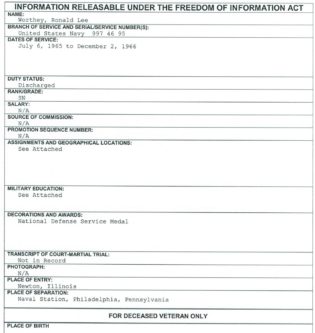 Ron Worthey only spent about 17 months in the Navy before getting booted, something one really HAD to be a 24K shitball to do back in 1966.