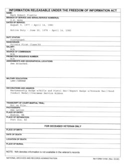 Well, the truth is that Fisette spent less than four years on active duty – all before the Grenada Operation. He earned a Good Cookie and an Overseas ribbon for when he was stationed in Germany. He left the Army as a Private First Class (E-3).