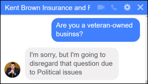 “I’ve…been a Veteran? he even hesitated as he said it. Oh yeah, make a video promoting your insurance business while wearing a white t shirt, real smart. WHAT A milquetoast candyassed pisspnts bedwetting booger-munching…