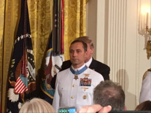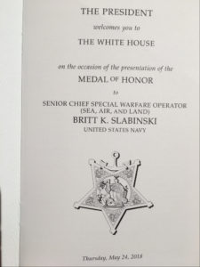 Our buddy, MCPO NYC USN Ret. sends us pictures from the White House while Retired Master Chief Special Warfare Operator Britt K. Slabinski gets his Medal of Honor today;