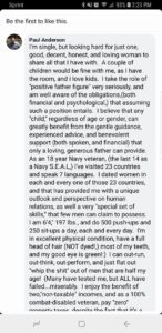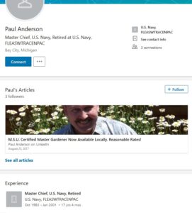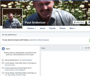 Our partners at Military Phonies share their work on this Paul Joseph Anderson, Junior who claims that he’s a retired Navy SEAL and Master Chief. And he’s single, ladies, even though he has most of his teeth;