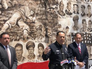 In March, Cabrera allegedly tagged graffiti on the exterior wall of La Chiquita Market on Washington Avenue in Santa Ana, which hosts a mural called “Among Heroes.” The mural displays nearly 200 portraits of mostly Latino and Latina U.S. veterans — the majority of whom served during World War II.
