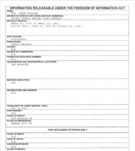 That when it comes to concealing its embarrassing truths or for purposes of national security the military and intelligence apparatus as well as political appointees will, when necessary, go so far as to manufacture entries and create a fraudulent DD214 and/or SRB known as a “Front File” to provide them plausible deniability.