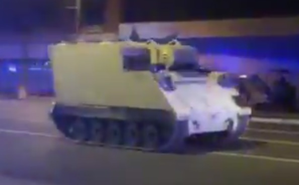 A soldier at Fort Pickett, Virginia took an eleven-and-a-half-ton M577 armored command vehicle for a joyride through downtown Richmond, Virginia last night according to WUSA9.
