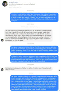 Our partners at Military Phonies shared their work on this fellow, James Krupsky who pretends that he was wounded at the Beirut bombing of October 1983, that he earned four Purple Heart Medals. He also pretends to be his wife on social media, then he denies that he even has a wife;