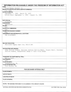 And FWIW: if he’s claiming 2 PHs he’s still probably lying about that; ditto the “strapped to the outside of a helo” while being MEDEVACed claim. The FOIA above only shows one PH, and given the rather short duration of the ground conflict I’d guess only a very small number of people received more than one PH during Desert Storm. And I’d have to see the “strapped outside . . . ” bit personally to believe that.