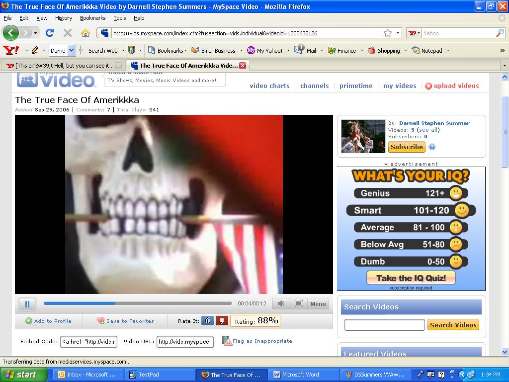 And here’s a screen cap of a video he produced and put on his MySpace page about Amerikkka;