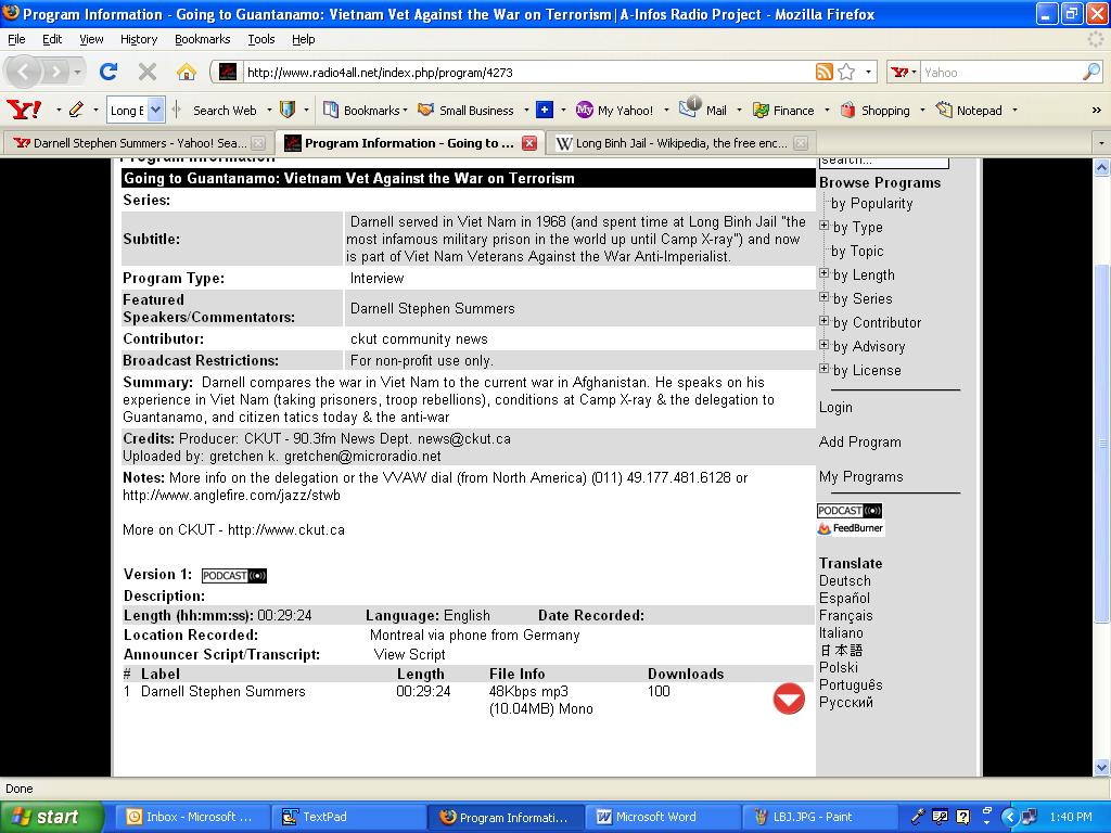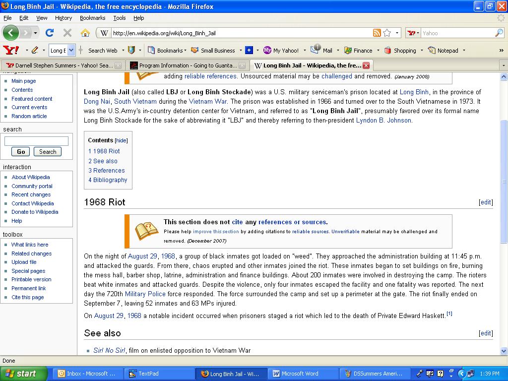 A quick check of Wikipedia, tells the tale of what happened in Long Binh jail in 1968 at about the same time Darnell claims he was held there;