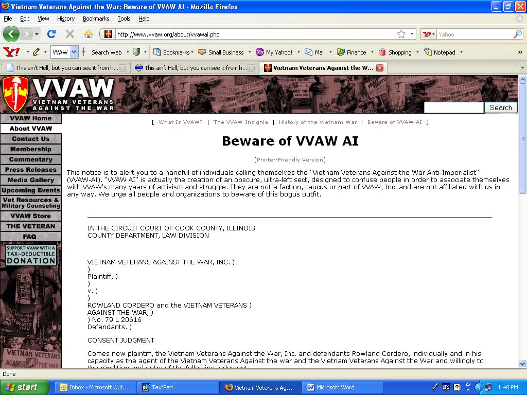 He belongs to “Vietnam Veterans Against the War – Anti-Imperialist”, a group that even the VVAW calls “ultra-Left” and warns its members away;