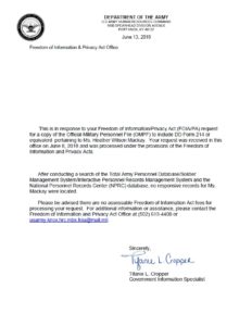 When asked for her military records, the Air Force and the National Personnel Records Center responded “Who?”