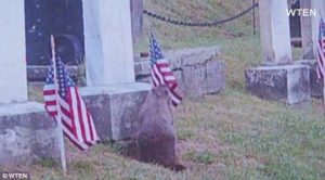 ‘They saw the woodchuck jump up on a flag and pull it right out of the holder,’ Mark said.