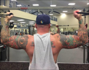 In that article, Deane claims that he was a Force Recon Marine and “stationed” in Iraq and Somalia with nine years of service. He’s also made verbal claims that he was a POW. He loves his tattoos;