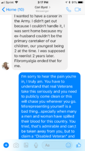 if I DON’T call myself a disabled vet how the fuck does she call herself one?