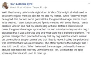 ok, help me out here. what again did she call the police after being asked to leave? does she, in fact, understand the differences between service animal and emotional support animal? what sort of disability is she trying to scam?