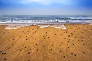 Every year, millions of tiny, baby olive ridley sea turtles hatch on Rushikulya Beach in India. It’s a treacherous journey—experts estimate that only 1 in every 1,000 baby sea turtles will make it to the water before being killed by a predator.