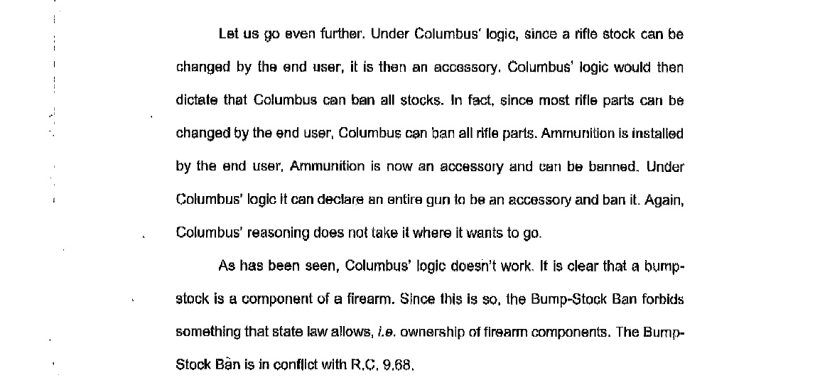 I read the judge’s decision and, just to be clear, the unconstitutional aspect of the ordinance refers to the Ohio constitution. The municipality overstepped its bounds by passing an ordinance that conflicted with state law. Given the judge’s writing style, I’m surprised he didn’t finish his decision with, “Are you people stupid or what?”