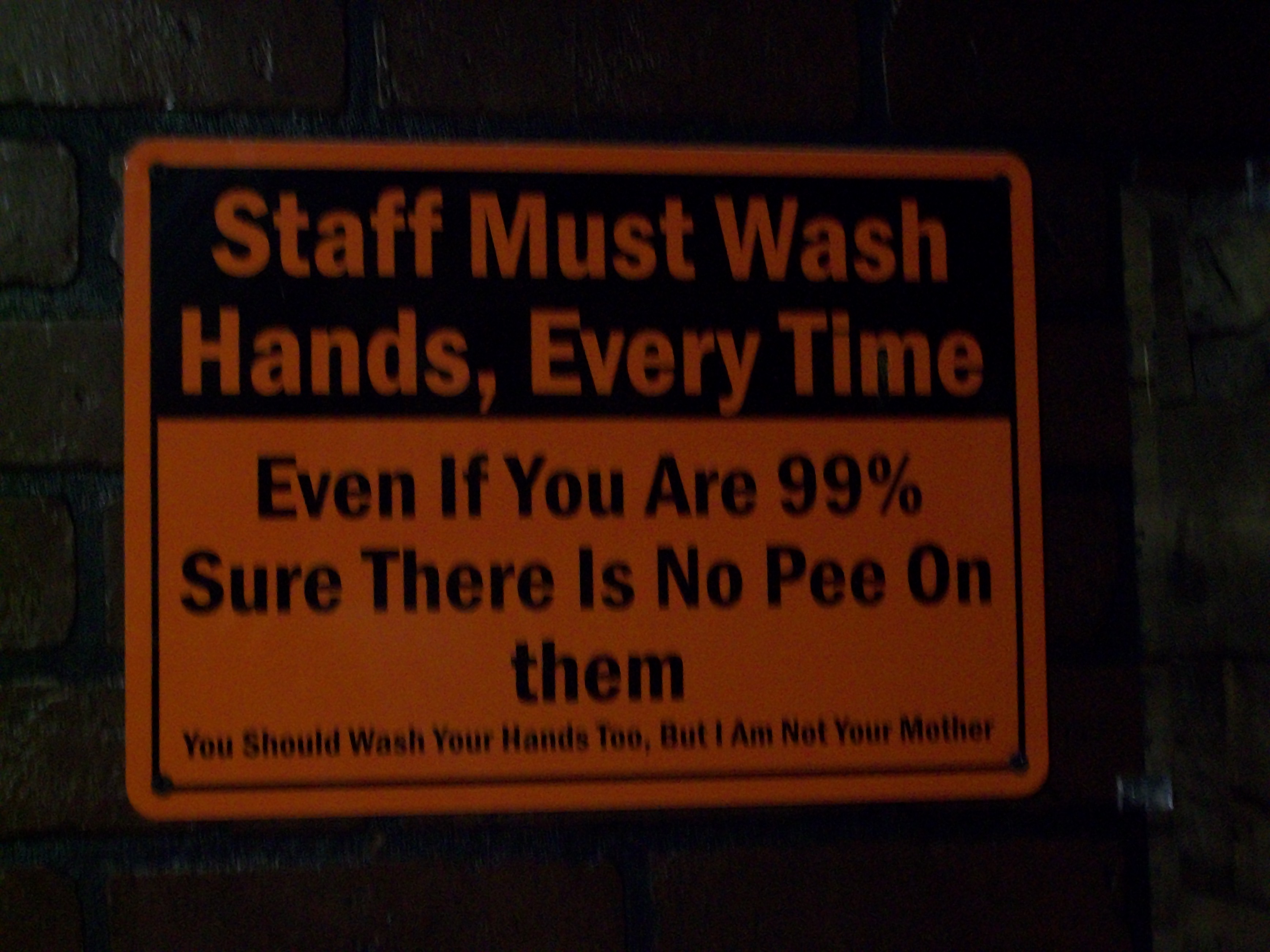 But if you’re observant, besides the place’s name you get another clue about the place before you even enter. There’s a sign that tips you off posted outside the building. You can see it from the parking lot as you approach the building to enter (be sure to read the fine print):