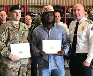 AW1Ed sends a link to the story of US Army Captain Christopher Anderson, the company commander of the Dearborn Army Recruiting Company, who spotted an SUV that hit a parked car. The driver was unresponsive when Anderson stopped to investigate and the captain smelled smoke;