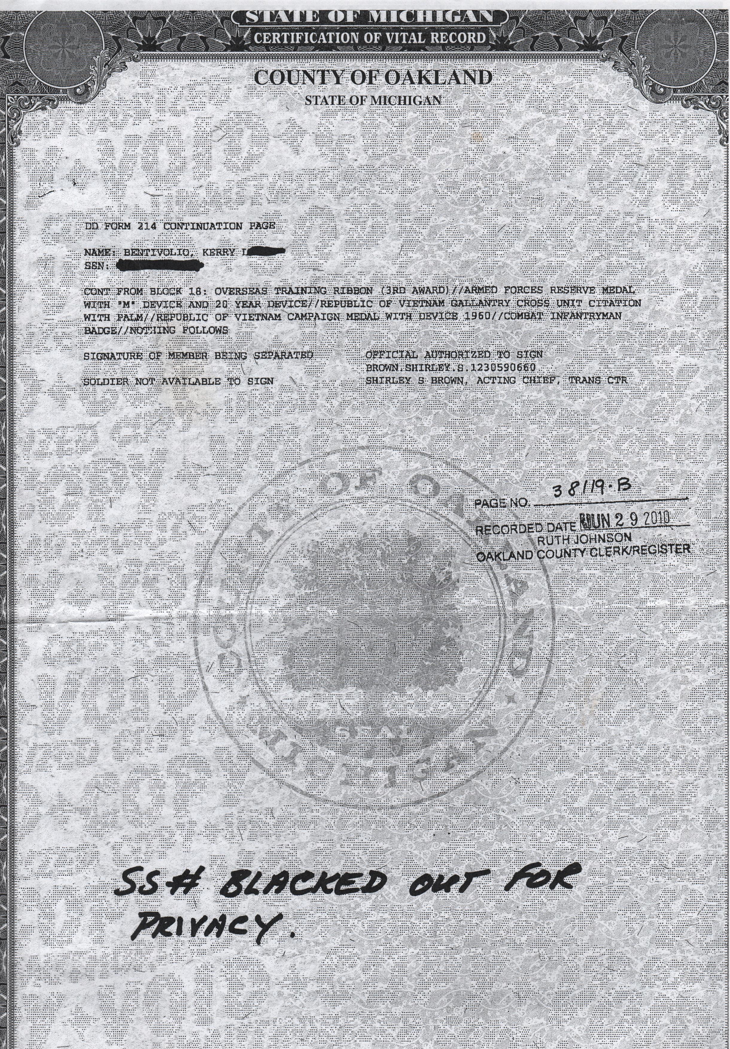 I have some advice for Bentivolio, if an award or in his case three separate Purple Hearts, a Bronze Star and a Silver Star are not in his records how about he STFU about having them. Bentivolio says he never made any claims to having Purple Hearts and a Silver Star. Ya, I guess he is attempting to say he was “Put In for Them”. The great thing about going to Civil Court is the Discovery Process. In Court you will have to provide your entire Service Record which can be held to the scrutiny of an “Expert” in the field. It is easy to find a copy of Bentivolio’s DD214, he posted it on his web site.