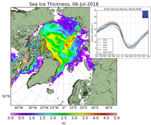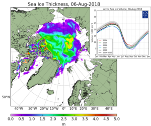 The above graphic is from Denmark’s Polar Portal as of August 6, 2018. Different colors represent different ice thickness. Didn’t someone predict a high likelihood that this wouldn’t be there?