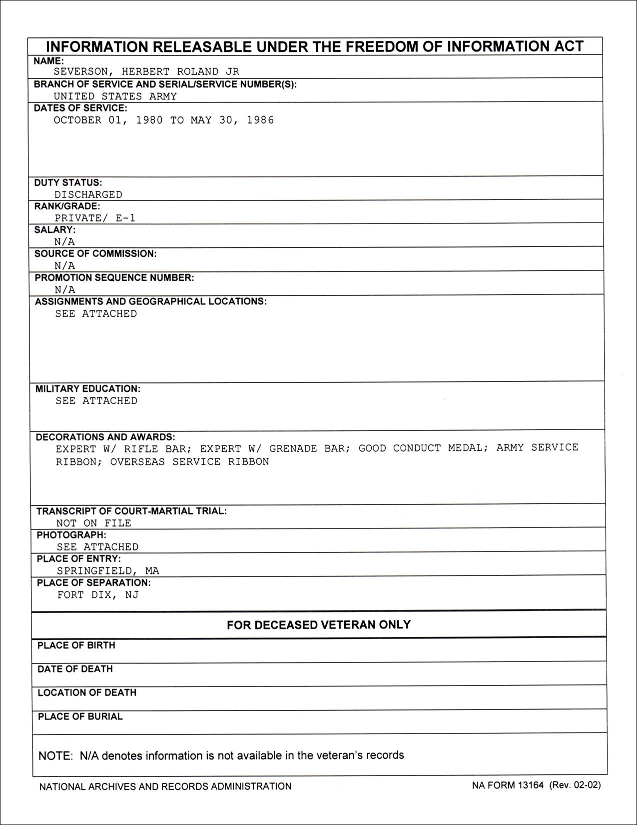 Herb Severson was kicked out at Fort Dix as an E1 which flashes the word “SHITBAG” like a casino sign on the Las Vegas Strip!