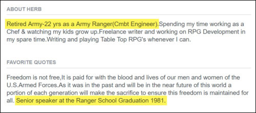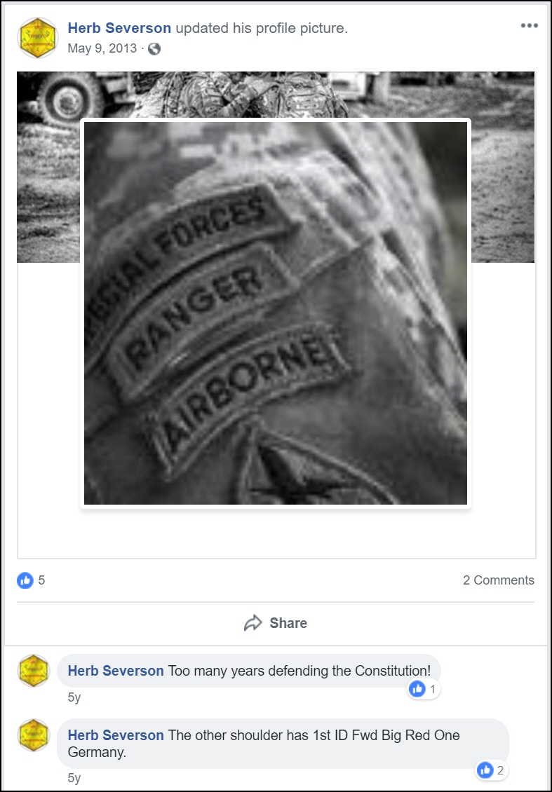 Herb Severson WAS NEVER A part of the US Army 75th Ranger Regiment.