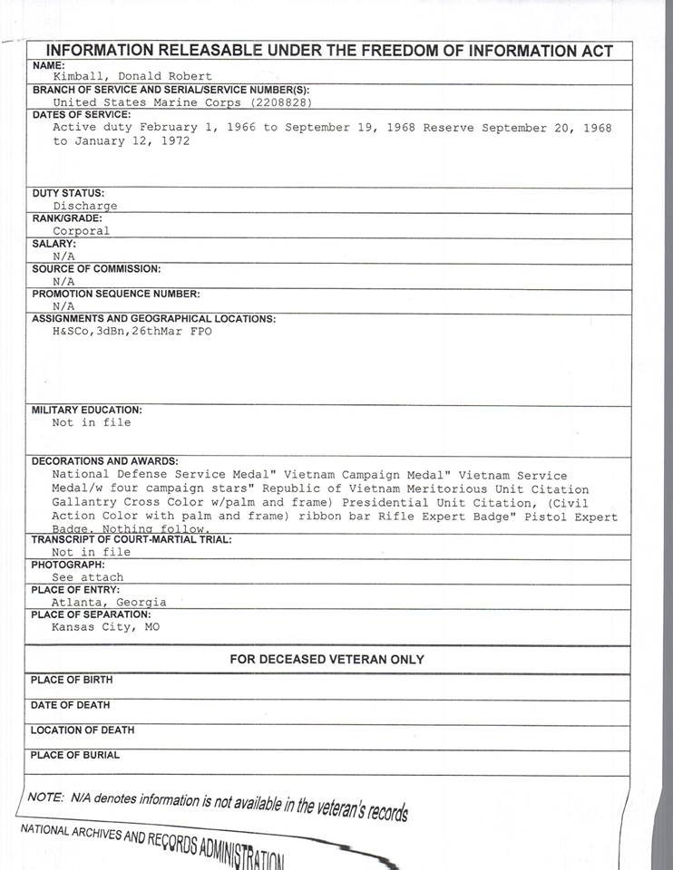 Wonder if Donald Ronald Kimball knows this Marine: