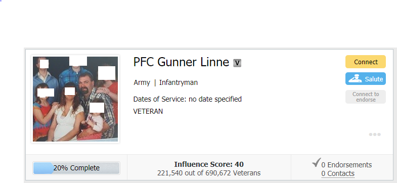 Odd. RallyPoint ‘V’ on his profile means he was verified at some point. Bet the admin would like this info