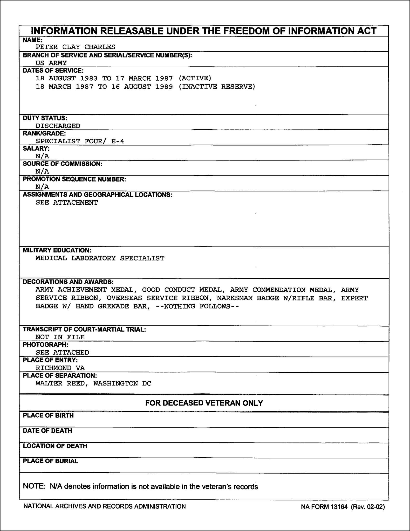 The folks at Military Phony sent us their work on Peter Clay Charles, a professor that has students that think he was a Green Beret.