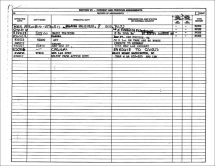 But my main question is, if he signed up for a four year critical MOS/Army College Fund Money enlistment, why was he discharged five months earlier than the four year mark? Maybe something hinky going on there? And one would think if 92B was a critical MOS during that timeframe, how is it he couldn’t even make E-5 in almost four years? Inquiring minds want to know.