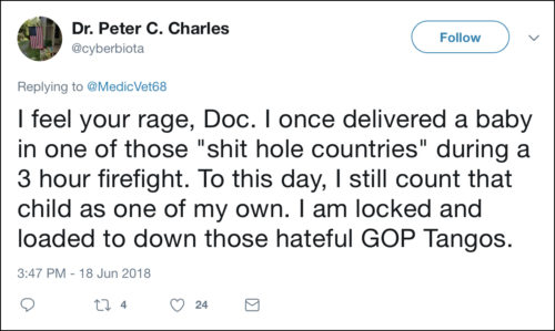 Odd that he fakes everything but wants to remain part of the E-4 mafia. Not many E-4’s have been to every shithole. Although in his case, I’m sure he saw a lot of shitholes, and entered just as many, while working as a fluffer at Barry’s Bathhouse.