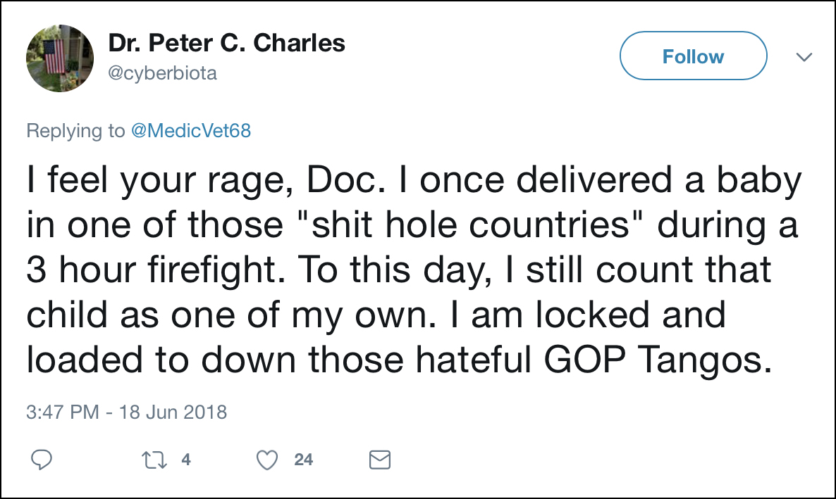 “3 hour firefight in a shithole country” probably means he had a 3 minute fur-fight with a hooker in a German whorehouse over amounts not paid for services rendered…