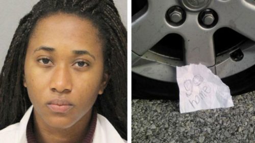 Lewis also claimed that after she parked her car in front of her house, she woke up the next day to find slashed tires and a note that read, “Go Home.”