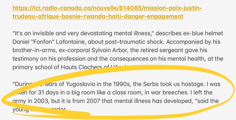 SVC is well aware of hostage incidents involving Canadians that occurred in the UN’s Bosnia-Herzegovina Command including those involving Canadian Army units in Bosnia (GT 12e RBC, RCD BG, 3 R22eR and Canadian UN Military Observers) over the course of the UN Protection Force mission.