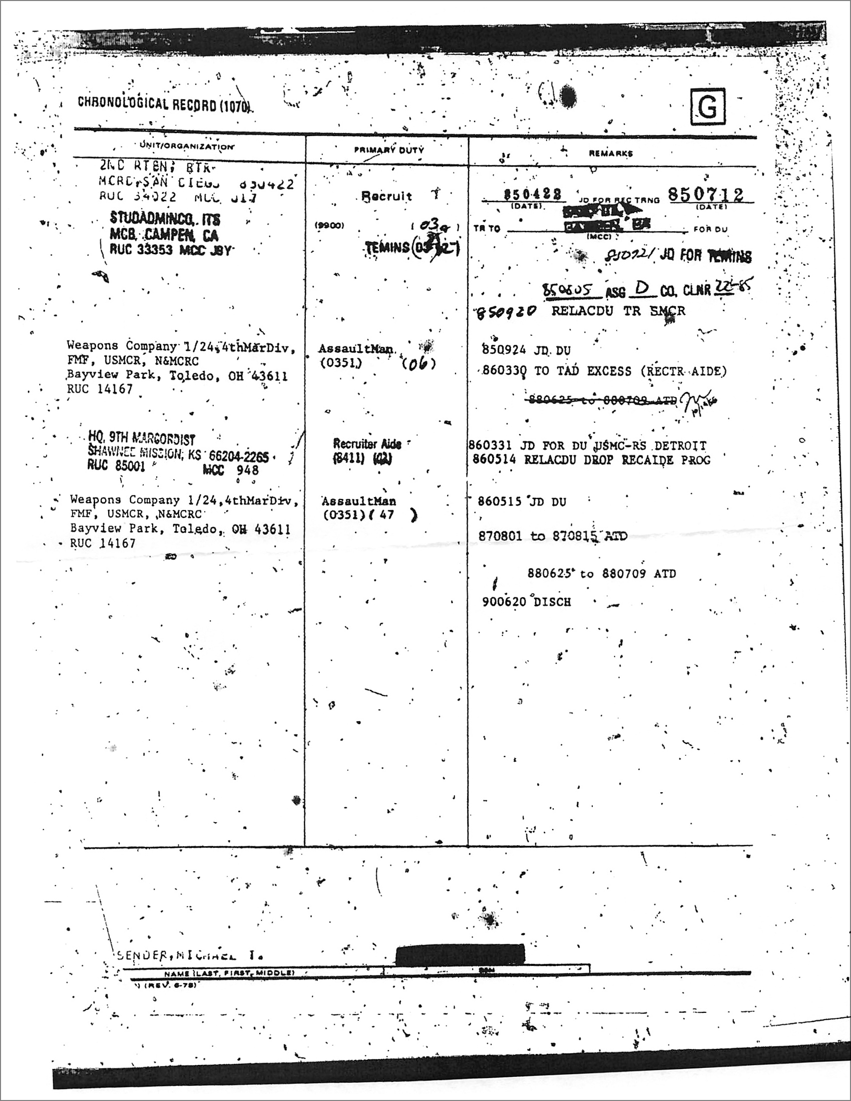 You wouldn’t know it’s the same Marine by looking at his official military records: