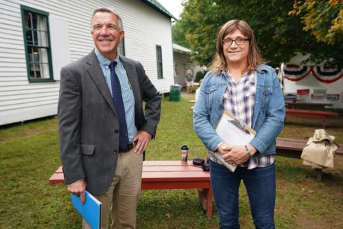 Vermont Gov. Phil Scott and his Democratic challenger, Christine Hallquist, in Tunbridge, Sept. 14. PHOTO: DON EMMERT/AGENCE FRANCE-PRESSE/GETTY IMAGES