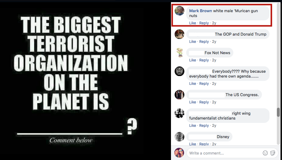 “white male ‘Murican gun nuts” are “the biggest terrorist organization on the planet.”