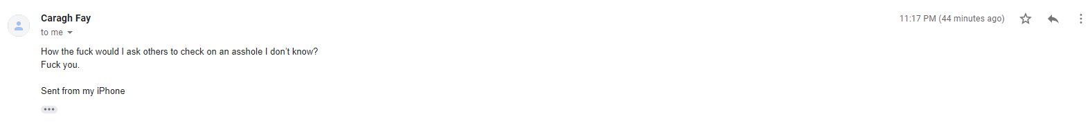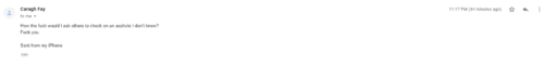 I can only wonder if Caragh Fay says Fuck you to everybody or am I special?