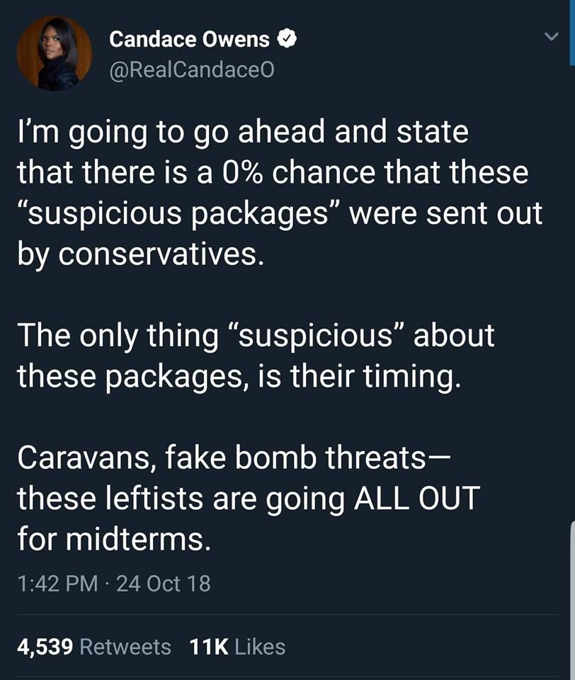 I am not suggesting anything about who or what is behind this, it all seems very fortuitous for the left to be victimized just before election day. I won’t be surprised if it’s some pissed off Bernie boi behind the whole affair…especially as it seems there is little danger of any of these things actually firing.