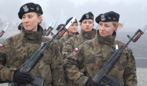 Those Polish soldiers look all spit an Polish as they march.