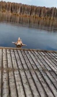 It’s similar in concept to the “Polar Plunge” in the U.S., where people jump into ice cold waters. The video shows someone using methods inconsistent with how the actual celebration is done. She actually tries to jump though and break the ice… Perhaps to outshine those who do it the traditional way.