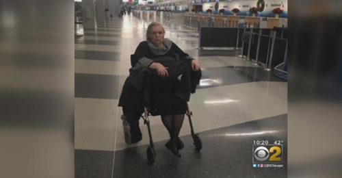 A disabled 67-year-old woman was left at the Chicago O’Hare overnight this past weekend. One of her family brought her up to the gate. He checked that the flight was going to go as scheduled, and that his mother would be helped.
