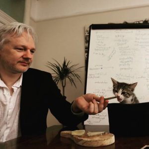 Evidently things got testy when the embassy cut off Assange’s internet access in March, and also let him know they were not amused he didn’t clean up after his cat. Assange’s own version of the cat controversy, according to an Italian newspaper account: