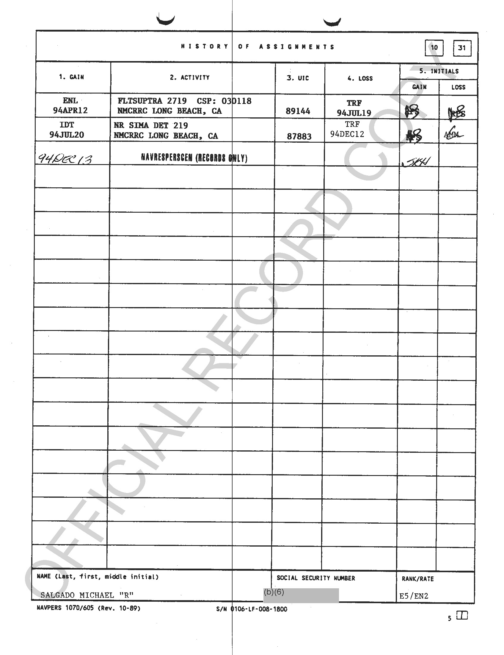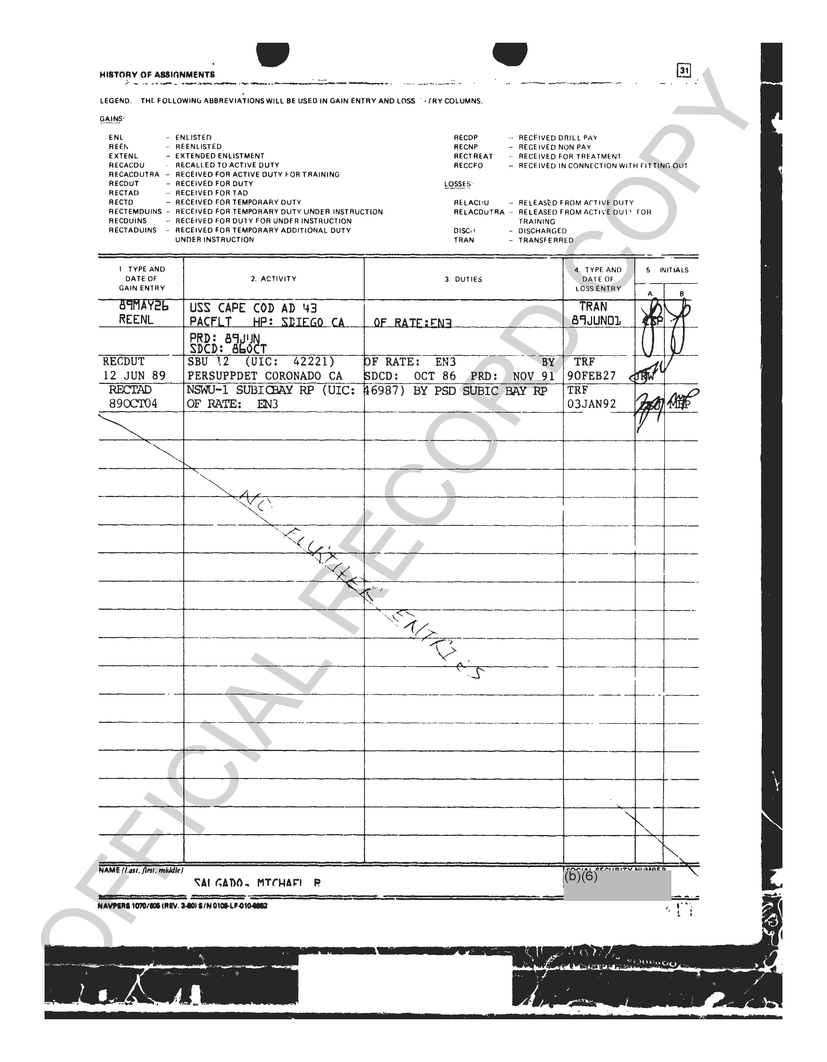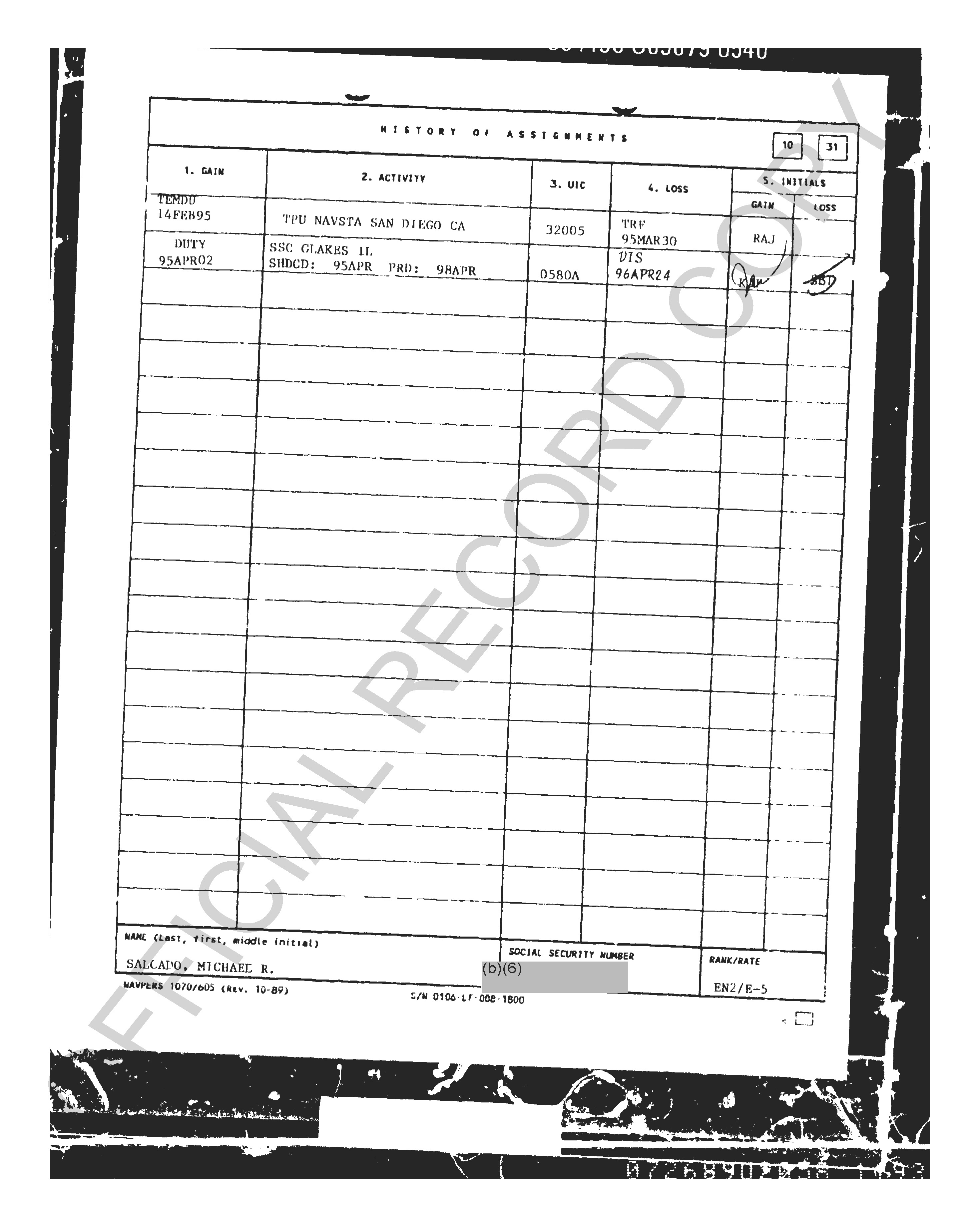 He got out as an EN2 in ’93 and came back in ’95… probably as an E-4 since he had been out for a while. Got hammered at Captain’s Mast and was given the boot at SSC Great Lakes.