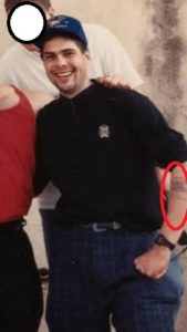 Wait a minute…. What’s the deal with the bandage over the Trident tattoo? Surely he didn’t get that tattoo while he was on active duty??