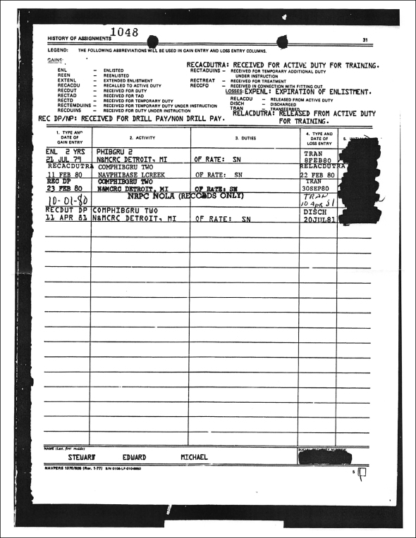Edward Michael Stewart only made it to E3 according to records found, sounds like he was dedicated to mediocrity!