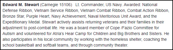 Edward Michael Stewart was one of those “high drag, no speed” guys that had imaginary service in Viet of the Nam. Bet his imaginary friend was a guy by the name of Long Duc Dong (GONG).