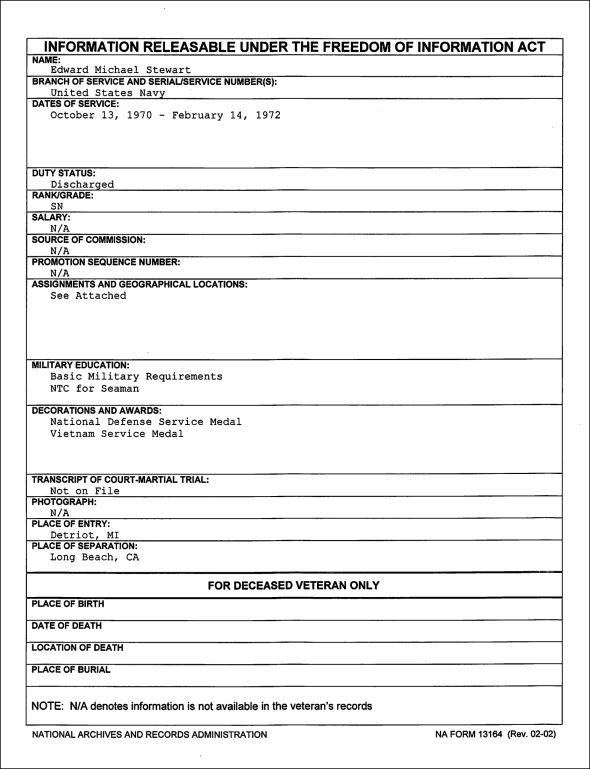 It says on Ed Stewart’s Facebook page that he went to college from 1972-1976, which would be consistent with his military records saying he left active duty in 1972.
