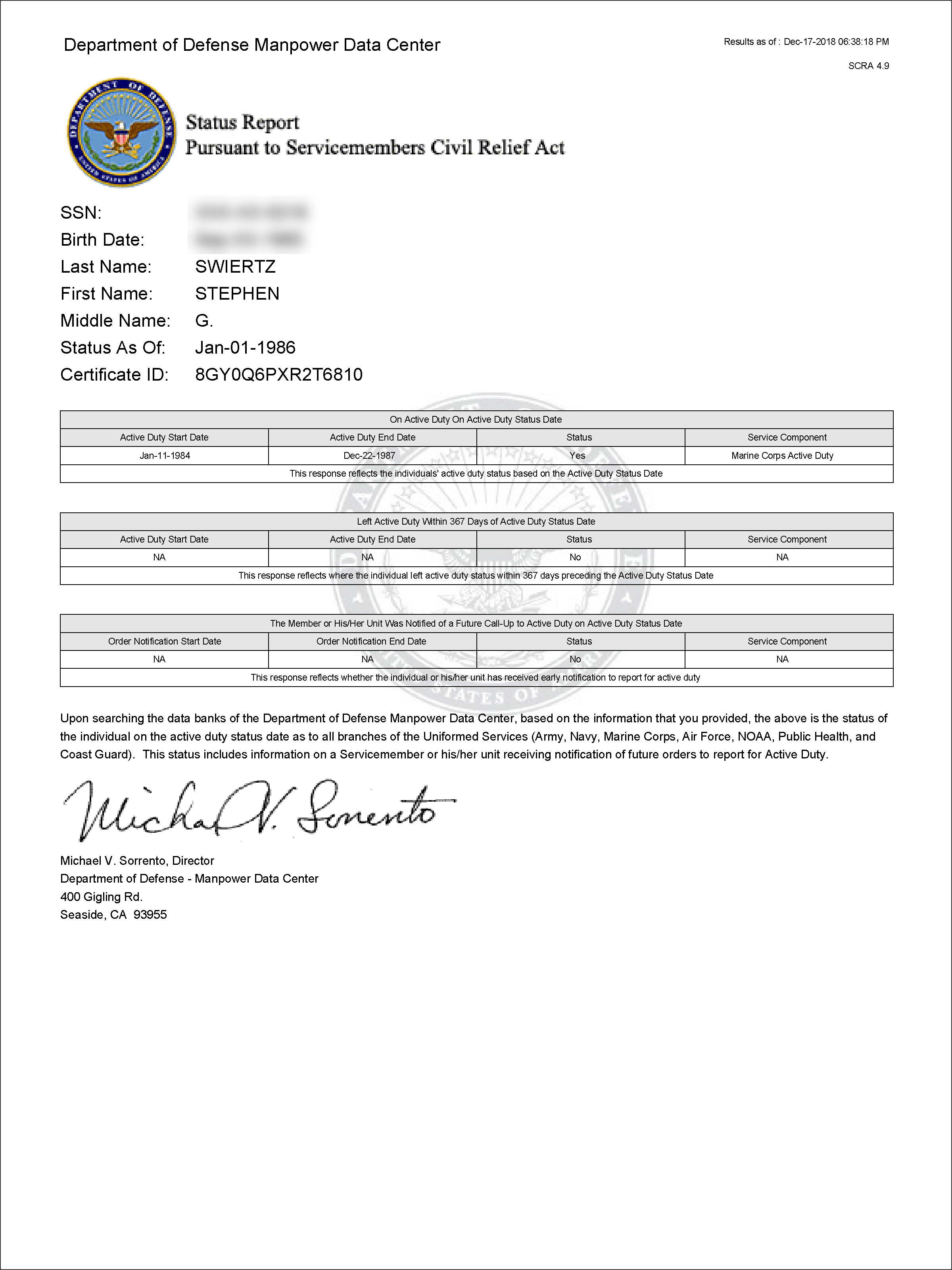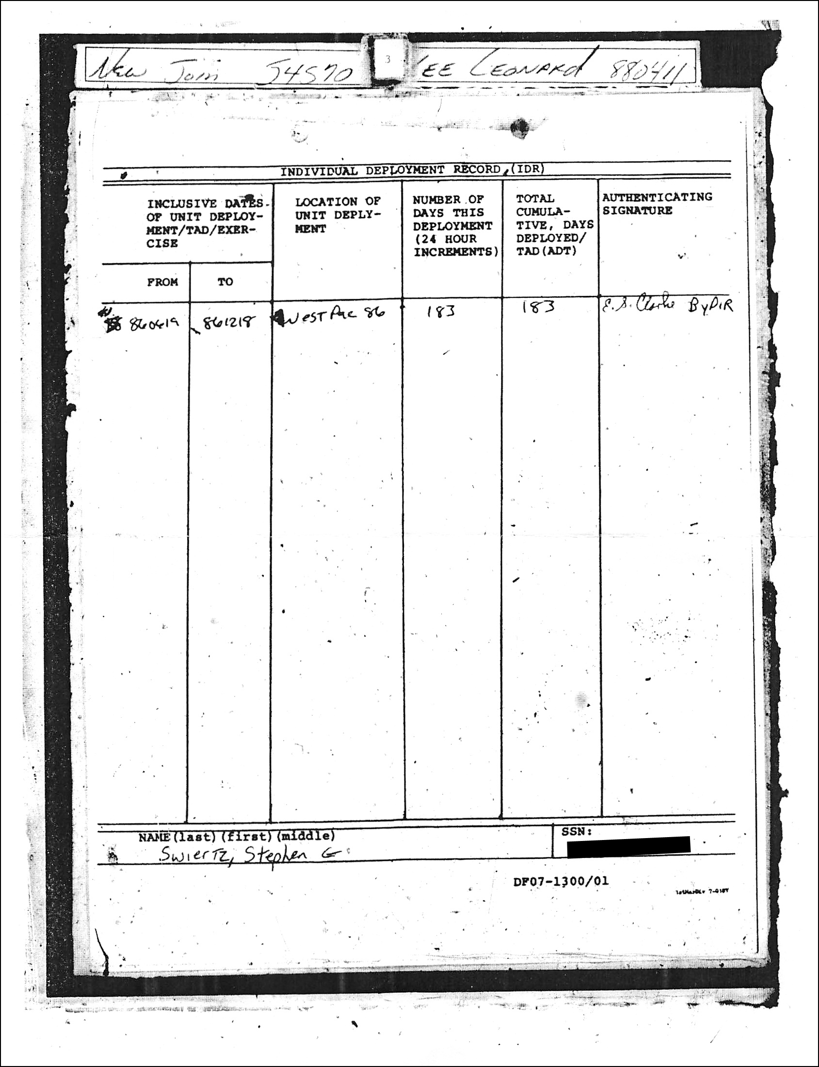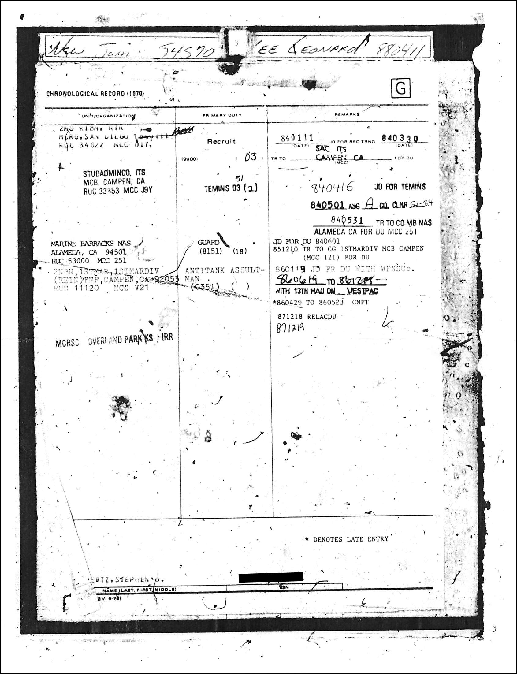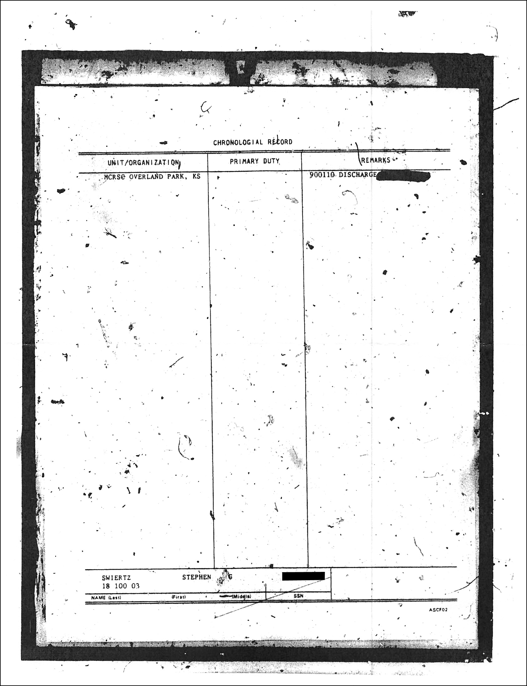 The records show he was finally discharged in 1990, but he was released from active duty in 1987.