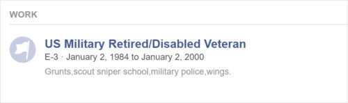 He also claims that he served for 16 years and was retired/disabled…